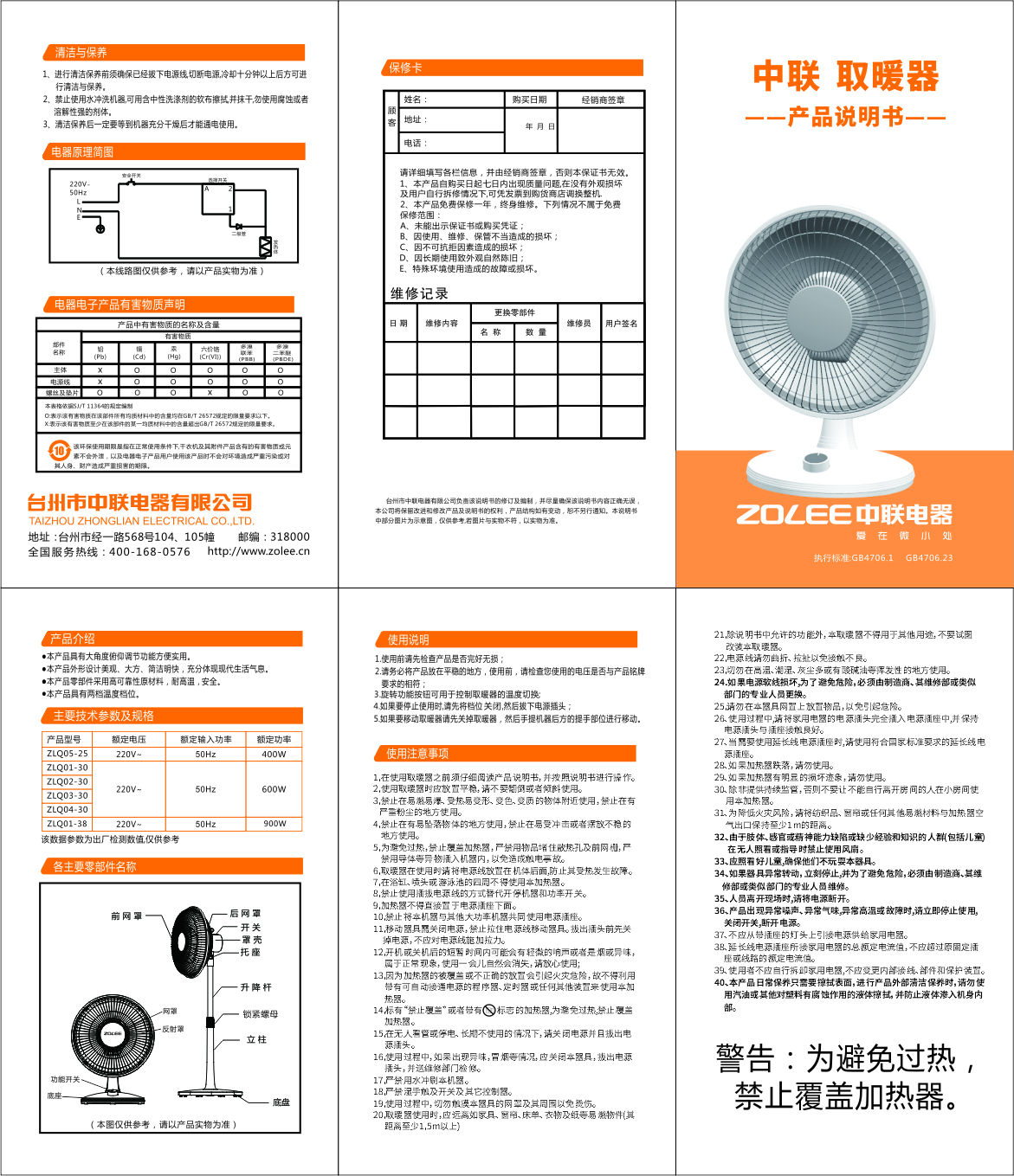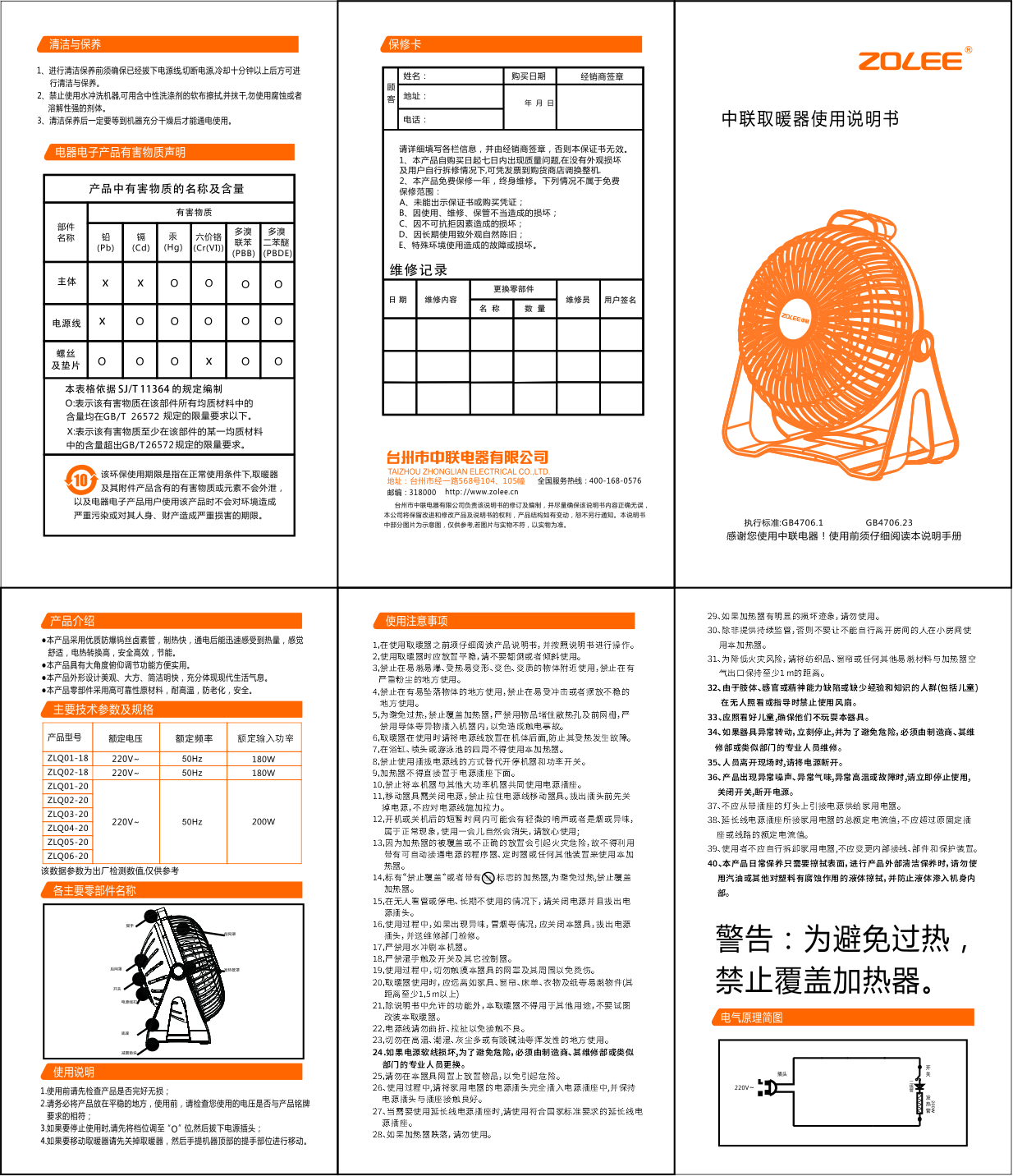 取暖器說明書